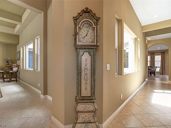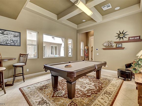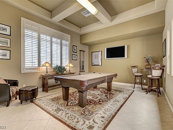 Exceptional semi custom Toll Brothers home located in the gated community of Madera in Mountains Edge. Immaculate 4bd, 3 1/2 ba, 3 car garage with billiards room, media room, office, formal dining room, dual staircases, oversized primary ensuite with separate sitting area and large soaking tub. Custom kitchen cabinets, granite counters, stainless appliances, walk in pantry. The private oasis style backyard has a beautiful salt water pool/jacuzzi, covered patio, firepit, built in bar/bbq. Separate courtyard off dining room with zen like fountain. Surround sound and smart security systerm. Tankless water heater and filtration system. This beautiful home is an entertainers dream and will exceed all expections. Master HOA has community parks, playgrounds, sports fields and paseos for all your outdoor activities. Most furnishings available by separate bill of sale.