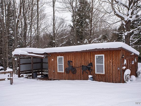 NEW ON THE MARKET! DISCOVER PEACE AND PRIVACY IN THIS CHARMING, WELL-MAINTAINED 2-BEDROOM, 1-BATHROOM SINGLE-STORY HOME, SET ON OVER 3 BEAUTIFUL, MOSTLY WOODED ACRES. THE WARM AND WELCOMING COUNTRY EAT-IN KITCHEN FEATURES CLASSIC PARQUET WOOD FLOORING, LEADING INTO AN OPEN DINING AREA THAT FLOWS SEAMLESSLY INTO THE COZY LIVING ROOM. WITH A WOODSTOVE TO KEEP YOU WARM ON CHILLY DAYS, THIS HOME EXUDES COMFORT. THE APPLIANCES AND MOST FURNISHINGS STAY FOR YOUR BUYING CONVENIENCE. OUTSIDE, YOU WILL FIND A DETACHED TWO-CAR GARAGE, PERFECT FOR STORAGE OR HOBBIES, ALONG WITH A SMALL BARN IDEAL FOR STORING OUTDOOR EQUIPMENT OR HOUSING ANIMALS. LOCATED BETWEEN THE TOWNS OF SPRINGVILLE AND VIBRANT ELLICOTTVILLE, THIS PROPERTY OFFERS BOTH SERENITY AND ACCESSIBILITY. DON’T MISS OUT—THIS HOME IS PRICED TO SELL!