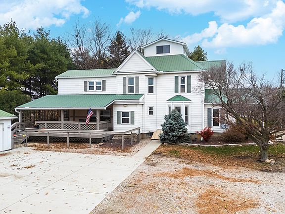 This is it! Almost 2 acres and a beautifully updated home with two large outbuildings! NEW October 2022 37x65 Shop with 14x14 foot overhead door with opener, building is heated, insulated, has a concrete floor, separate propane tank and a rough in for a bathroom. In addition, sellers have added concrete pads outside the detached 2-car garage with 36x24 machine shed, you will find a 12 ft overhead door, 220v power. Kitchen remodel 12/22 you will find quartz countertops, custom amish cabinets, tiled back splash and LVP flooring. HVAC 9/20 with two zones for extra convenience, GUTTERS 4/21, NEWER WINDOWS, pool and whole house generator to top the list! UPDATES from the last 15 years are metal roof, septic and well.This home has so much to offer with 3 of the bedrooms upstairs and a flex room above one of the bedrooms you could make an office, bar or anything you desire. The extra large bathroom upstairs has an additional large closet that has the washer and dryer right on the same level as the primary suite. This home won't be on the market long once you see the large covered deck to sit and enjoy the day with a fresh drink, fenced area for pets and family. The home also has an outdoor whole-house wood-burning stove that can be used to heat the home for lower utility costs.