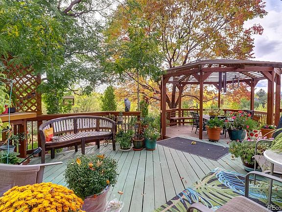 EXCEPTIONAL! This home is exceptional inside and out. It sits on over a 1/3-acre lot, backs to a huge open space, and has great mountain and sunset views. The large brick arch entry welcomes you home. Once inside, the grand two-story entry and beautiful hickory wood floors usher you in. The beautiful newer hickory wood floors extend from the entry into open floor plan of the kitchen, nook, family room, and powder room. The dreamy new kitchen features a huge kitchen island, beautiful custom cabinets, perfectly matching granite countertops, subway tile back splash, high-end appliances, and a perfect corner sink with lots of outdoor light flowing in. The kitchen is perfect for that chef with its two ovens, gas stove-top, and built-in microwave. The ambiance of the large family room is highlighted by the wall of built-ins and brick gas fireplace. There is plenty of room for large gathering as it expands to a large bay window nook. The main floor features a formal dining room, living room, office, updated half bath, and mud room with laundry. Upstairs is the luxurious primary suite with a solarium sitting room with mountain and sunset views. The primary has a beautifully updated 5-piece primary bath with walk-in closet. Two secondary bedrooms share a private adjoining bathroom, while the fourth bedroom has its own private bath. Newer carpet and windows are on the main two levels, and newer window coverings on the main floor. The finished basement offers versatile living space, large rec room, wet bar, 3/4 bath, second office, and large storage room. Step outside to your private oasis...fabulous gazebo & deck for enjoying the outdoors; the tranquil sound of the water feature flowing into a stunning koi pond; raised garden boxes; and large flat grass area. Oversized 3 car garage. Enjoy all Highlands Ranch has to offer: including pools, tennis courts, trails, clubhouse. Shopping, dining, amenities, hospital, and C-470 all within minutes. This home is truly EXCEPTIONAL.