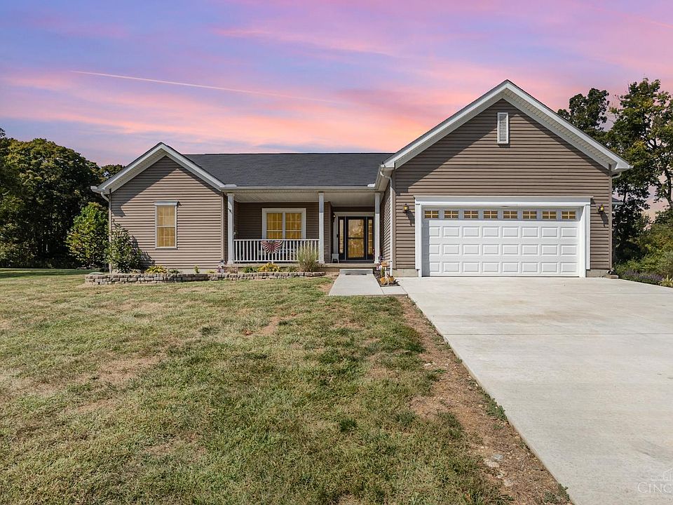 Escape to your own private oasis! This 3-bedroom ranch sits on 12.48 secluded acres, with two primary suites featuring spa-like baths & walk-in closets perfect for multi-gen living. The open concept design flows with cathedral ceilings, a modern granite kitchen with island bar, and a stunning stone fireplace in the great room. French doors open to a flexible study/4th bedroom. Step outside to a fenced stamped-concrete patio with pool, or relax on the covered porches as fall colors surround you. Gorgeous plank flooring throughout. Nature & wildlife abound no neighbors in sight, just peace & seclusion down your long private drive. Two 32x24 pole barns (concrete floors & electric) make this a dream for hobbyists or car enthusiasts. Rare find combining luxury, function, & privacy!