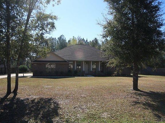 GORGEOUS home on PREMIUM 1 acre lot w/beautiful mature oaks spotted throughout the front & backyard. The back of the property has been left natural but with a pathway cleared for exploring nature w/the little ones! The home sits back away from the street so you have a nice sized front yard to enjoy from your 27' front porch! Now step inside this beautiful home to FRESH PAINT 12/2015, GORGEOUS HARDWOOD FLOORING (1/2015) that starts in the foyer & continues into the formal dining room, office & great room! TILE throughout all the wet areas & plush carpeting in bedrooms. You won't believe all the extras this home has to offer such as: SPANISH LACE WALLS & CEILINGS, Trey Ceilings w/CROWN MOLDING in the master & great room, corner ELECTRIC FIREPLACE & plant ledge in great room, Bull-nose corners, Office w/French Doors, Formal dining room with a plant ledge, linen closets in all bathrooms, Kitchen w/GRANITE COUNTERTOPS, Island w/pull out dual trash, UPGRADED CABINETS W/CROWN MOLDING & SOFT CLOSE DRAWERS, STAINLESS STEEL APPLIANCES including a NEW dishwasher 11/2014, LARGE WALK-IN PANTRY, deep sink w/retractable faucet & a breakfast nook overlooking the private backyard. This home is a split plan w/the master off the kitchen. The master bedroom offers sliding glass doors that open to the COVERED PATIO where you'll enjoy relaxing after a long day. The master bath is sure to please w/a double vanity, garden tub, separate shower & 2 walk-in closets. Across the home are 3 generous sized bedrooms & 2 full baths. The back bedroom has its own bath with a separate entry to the covered back porch! More features: HURRICANE SHIELDS, Gulf Power Select Home, SECURITY SYSTEM, Custom tool bench w/storage for hurricane shields, A/C replaced 7/2012, Re-seeded yard & aerated 3/2015, Carpet & grout professionally cleaned 1/2016, large laundry & side entry garage w/attic storage & work table. TRANS. TERMITE BOND w/ENSEC. Easy commute to Whiting Field, Hurlburt Field & Navarre Beach.