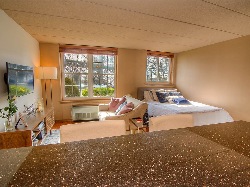 Beautifully appointed studio co-op in a fabulous Bay Ridge location, enables you to ride on the express bus (located directly in front on Shore Road) or the R train on 95th Street & 4th Avenue. Nearly new kitchen with gorgeous wood cabinets, quartz countertops & stainless steel appliances. Full bathroom is also nearly new with beautiful ceramic tile & vanity. The best part about this studio is that there are 3 floor to ceiling closets, with one being a walk in! There is a newly renovated card operated laundry in the basement as well as an owners storage closet & a place for a bicycle. Low maintenance of $474 per month includes real estate taxes. Heat & hot water are electric at an approx. cost of $50/month. Parking garage & outdoor lot around the corner at a separate cost where spots become available frequently. Competitively priced. 20% minimum down payment. Pet friendly ( weight limit for dogs). Qualified buyers only please. **** $1,000 selling bonus to selling agent ****