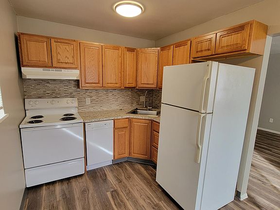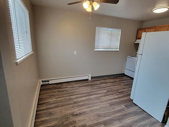 This first floor apartment has just been remodeled! The new kitchen features a multi-dimensional stone backsplash, typhoon ice countertops, oak cabinets, a dishwasher and eating space. New Beaumount grey wood floors in the kitchen and living room, new carpet in the bedrooms, new paint throughout. The kitchen and living room have south facing windows for excellent light. The bathroom has a tile shower surround and full bathtub. Both bedrooms have ceiling fans and windows facing the back yard. The unit has two linen closets and a coat closet. The building has just eight units, laundry on site, bike racks, assigned off-street parking, and a large common yard. Near Starbucks, Natural Grocers, Walmart, restaurants and shopping, Old Town Arvada, Red Rocks Community College, and the G- Line Lightrail. Near I-70 for a quick commute to Denver or up the mountain to the ski slopes! Tenant pays gas, electric and water. Please note that this property prohibits marijuana products.