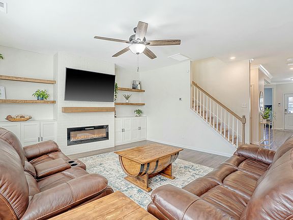 9995 Winged Elm Street's double front porch epitomizes classic southern charm, while interior upgrades provide modern advantages. The living room captivates with its custom built-in cabinetry and remote-controlled electric fireplace. Stylish floating shelves feature under-shelf smart lighting offering optional color variety that is App and Alexa controlled. Whole-Home WiFi and a built-in SimpliSafe security system provide further technological conveniences. The sizable kitchen features quartz countertops, tile backsplash, a gas range, a brand-new dishwasher installed in 2024, and abundant storage, including a walk-in pantry.The open floor plan provides for an eat-in kitchen, as well as a separate formal dining space and an office with built-in shelving. Upstairs, the spacious main bedroom suite features a walk-in closet, dual sinks, and both a step-in shower and a garden tub. Of the additional bedrooms, one is exceptionally large, offering the flexibility of a bonus room while still providing a walk-in closet for convenience. The considerable backyard is thoughtfully fenced to offer privacy without sacrificing the serene natural view beyond it. The back porch offers a combination of screened and unscreened areas to ensure comfort and enjoyment no matter the season or activity. Inside the garage, installed shelving and MonsterRax overhead storage maximize the space while still leaving plenty of room for two cars. The highly-desirable Coosaw Preserve neighborhood provides noteworthy amenities, including a resort-style pool, playground, and picnic area. The neighborhood offers residents the lush surroundings of nature paired with the convenience of location. Coosaw Preserve is situated directly across from Joseph R. Pye Elementary School and minutes from Charleston International Airport; Joint Base Charleston; Boeing, Mercedes, and Volvo campuses; I-26 and I-526.