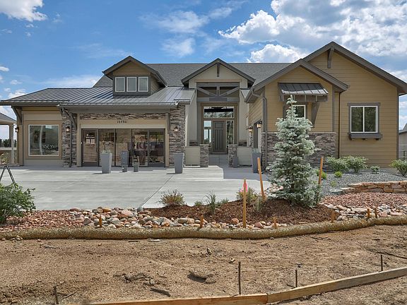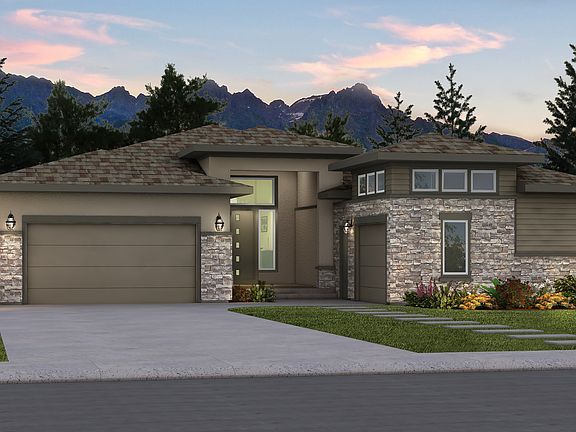 The Riverwood is brimming with striking architectural details, blending form and function together in perfect harmony. Towering 13' ceilings in the impressive entryway and family room leave a dramatic first impression. The simple yet chic family room includes a standard fireplace adjacent to an impressive standard covered patio/deck. Optional faux wood beams spanning the entryway and family room allow for a classy Colorado rustic feel. The kitchen includes a sizable island, ample cabinet space and a unique walk-in pantry concealed within the cabinets that is always a wow-factor in this home. Extra-large windows in the rear of the home draw in an abundance of light for a naturally well-lit living space. The main level includes the master suite, an additional bedroom and bath or optional grand suite, powder bath and the laundry and mud room located directly off the garage. Between the partially enclosed front courtyard and rear covered patio the breathtaking Colorado surroundings can be enjoyed year-round. This floorplan offers a standard 3-car garage with the option to expand to a 4-car garage. Homeowners who prefer to finish the basement will enjoy two additional bedrooms, a bathroom, rec room, an optional wet bar and an optional fireplace. The Riverwood can be fully finished to include up to 5 bedrooms and 5.5 bathrooms. Listings provided by Vantage Sales, LLC