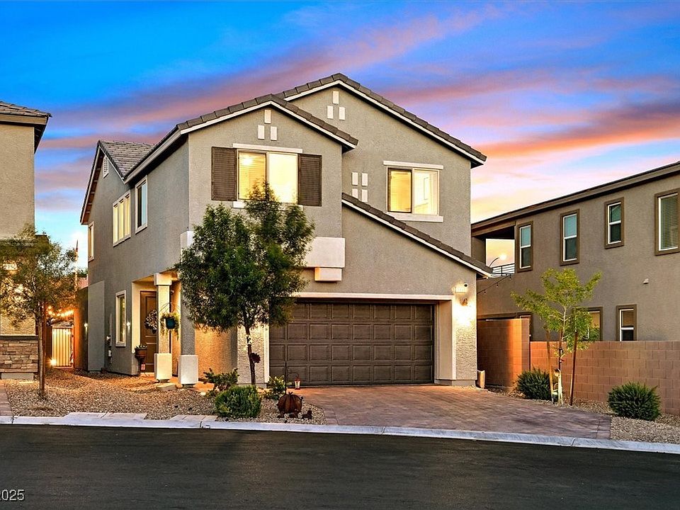 ABSOLUTELY STUNNING HOME SURROUNDED BY BEAUTIFUL MOUNTAINS! LOW HOA! Built 2023, this home is completely TURN-KEY inside & out. Walk into an IMMACULATE OPEN CONCEPT home with GORGEOUS flooring, accent walls & many luxurious touches. LIKE NEW! Upgraded kitchen with custom cabinets, STAINLESS STEEL APPLIANCES, eat-at Island, high-end granite countertops and more. The kitchen looks out onto a HUGE GREAT ROOM and dining area. Perfect for entertaining or relaxing! 4 large bedrooms upstairs as well as a COZY LOFT. The primary bedroom has a large walk-in closet & a pretty en-suite with separate tub/shower & dual sinks. The other 3 bedrooms are separate. 2 full baths upstairs & a powder bath down. Completely finished garage with EPOXY FLOOR & a wall of racks for storage. There is HomeTeam Pest defense system in the walls for easy pest control.  The exterior is completely done with large patio, pavers, turf & easy care landscaping. Playset can convey or be removed. THIS HOME IS A MUST SEE!