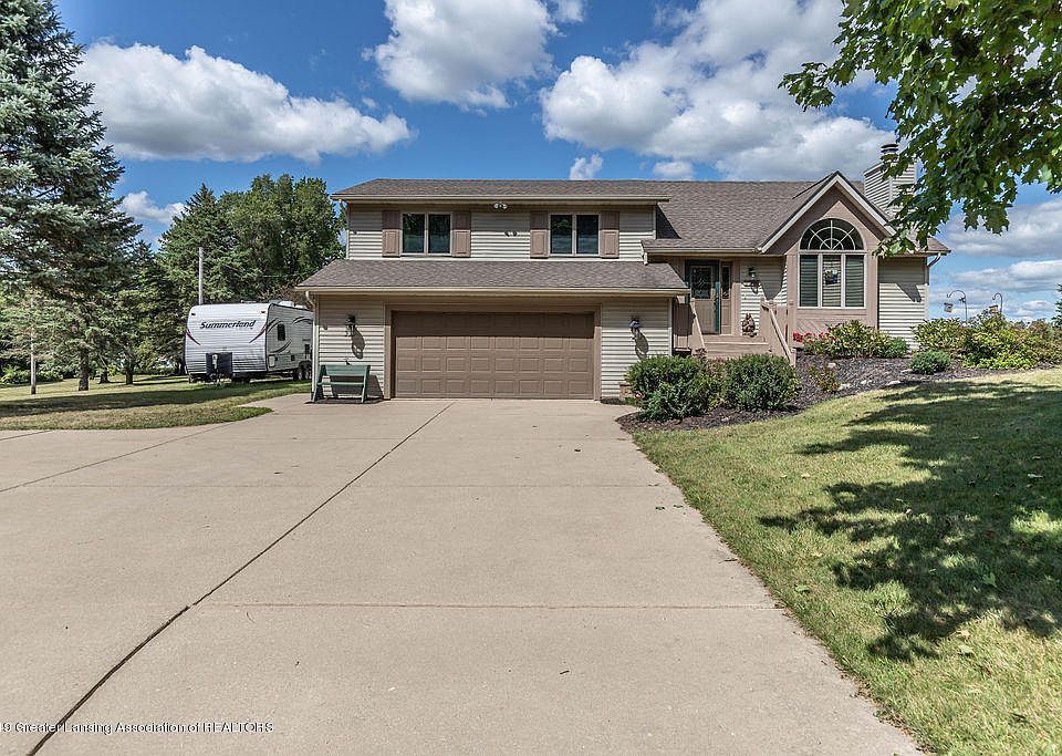 Quiet setting surrounded by country views. Custom built home with energy efficient windows, new modern lighting and appliances. Open great room floor plan. Spacious kitchen island sits center of custom cabinetry with work space elevated view of backyard. The dining room walks out to deck for outdoor seating and grilling. The Master BR (1 of 4) includes a spacious master bath with luxurious whirlpool tub, shower with dual shower heads and generous walk-in closet. Finished walkout lower level with family room, 3rd full bath and daylight bedroom. Extra large garage with 5 ft extensions on each side.