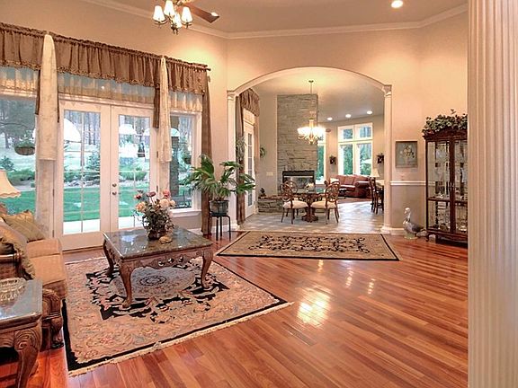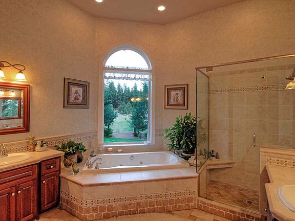 • Breakfast Bar, Pantry, Tile Counters, Double Vanity, Solid Surface Counters, Walk-In Closet(s), Jetted Tub, Kitchen Island, Tile Shower, Vaulted Ceiling(s), Open Floorplan
