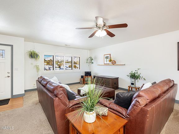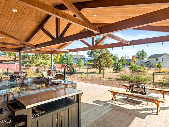 Breathtaking unobstructed Views of the San Francisco Peaks from every window in the front of the house and nearby forest access just a few houses down. Caves Crater trailhead and tons of nearby trails. The house is light and bright with new interior paint. Eat in kitchen, complete with stainless steel appliances and walk in pantry. Primary bedroom on the main. Unwind and recharge in 6-person hot tub, nestled amidst the tranquility of your private outdoor covered back patio. Retreat style outdoor living space which is a welcomed addition. With four bedrooms plus a versatile family room/5th bedroom, this home offers ample space. Air Conditioning for the warm summer days and a workshop area in the garage, this property has NOT been impacted in anyway by the flooding. RV parking.