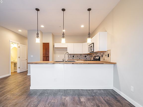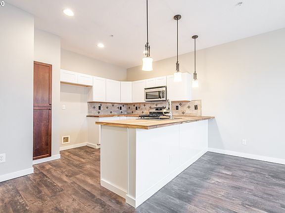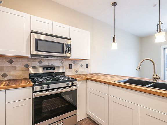 Charming three bedroom, three and one-half bath townhome with 2,100 square feet of living space in the heart of Happy Valley. Open concept main living space with a cozy gas fireplace and sliding glass doors to a spacious balcony deck. Gourmet kitchen with butcher block countertops and stainless steel appliances. New carpet and flooring throughout. Lower level with large bonus room, wet bar, and full bath. All bedrooms upstairs. Primary bedroom with en-suite bathroom and walk-in closet.