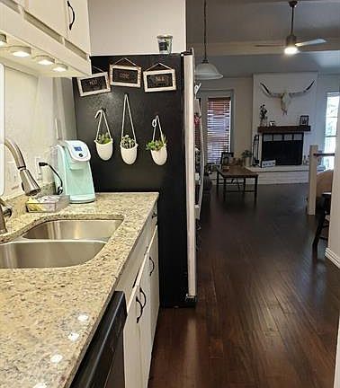 Beautiful Views of Eagle Mountain Lake from the balcony of this updated condo! Gated Community! Condo recently updated with hardwood floors! Kitchen opens to living area with new granite and stainless steel appliances! Both bedrooms have their own private bath! Master bedroom has private patio access. HOA includes sewer, trash, water, blanket insurance and maintaining common areas. Community amenities include, docks, volleyball court, swim area, and picnic area!