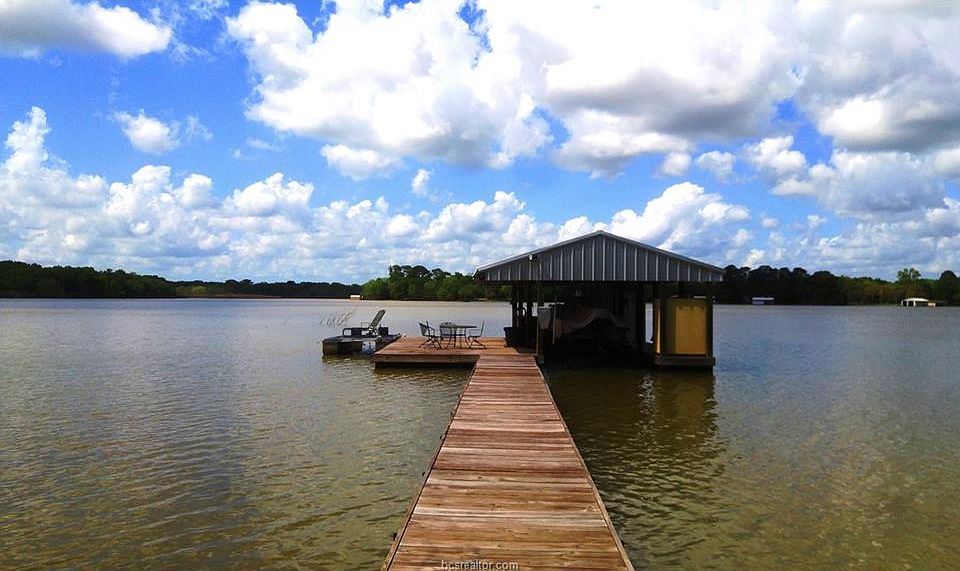 Beautiful waterfront lot on Camp Creek Lake with large yard and lots of shade trees. 3/2 M/H 1216 sq ft with 20x18 metal carport, 500 sq. ft of decking and 2 storage buildings (8x8 and 18x18). Waterfront amenities include a one stall boat slip w/lift, 16x32 partially covered party deck, 5 x 8 storage closet, outdoor sink, fish feeder and additional waterproof locker. Most interior appliances, furniture & furnishings convey. Other negotiable items include: Massey Ferguson 2300 diesel 4wd tractor w/front-end loader, box blade and shredder, John Deere Z425 zero turn mower, EZ Go golf cart, pontoon boat, 14 ft utility trailer and two patio sets. Shown by appointment. Franklin ISD.