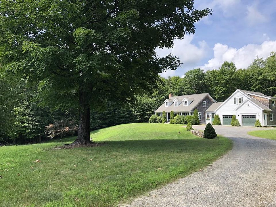 Country Estate within 1.5 hours of Boston and 1 Hour to Manchester. Truly a magnificent property and grounds. The main house offers formal living room, formal dining room, eat in kitchen, family room, 1/2 bath with laundry, master bedroom with bath and two guest rooms with hall bath. Guest quarters above the attached two car garage. Enjoy the front porch view of the pond and sights of nature. Take a stroll through the woodlands with ease of the many well established trails. Sit out on your own bridge spanning the slow trickling brook and let the stress flow away! Two barns 32 X 56 and Separate guest cottage with 1482 + sq ft. Not a home that you would stumble upon daily! Subdivision possibilities with town approval. NO DRIVE UPS AT ALL!