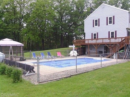 Complete info: http://9999keller.AgentMarketing.com - Summer is finally on its way. Enjoy your family in this 3 bedroom, 2.5 bath home offers a 26x32 inground swimming pool, 4 person hot tub, and a lovely gazebo and deck with remote retractable awning to sun and relax. The family room with its hardwood floors, gas fireplace, and sliders to the deck offer a great place to gather in both the summer and winter. The loft above the family room would make a great craft room, study, or office. The master bath features a jetted tub, and the carpet upstairs is all less than 2 years old. The walkout basement, with about 300 sq ft of finished space, makes a great place for kids. In addition to the 2 car garage, there is a 30x40 detached barn which features its own electrical service, concrete floors, heating, and 2 garage doors with openers. This home shows great pride of ownership as the owners have continued to upgrade and improve this home over the years. All this on 1.8 acres, only 5 minutes from Gun Lake, an all sports lake