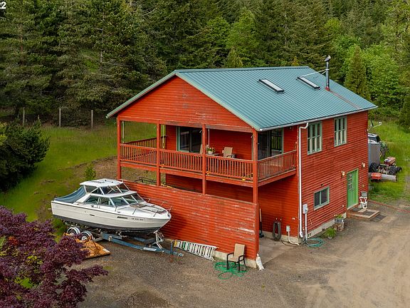 Secluded small acreage with forest, creek, pasture, and plenty of space for your hobby farm and garden! Vaulted main living quarters are on the second floor to maximize amazing views, and flows to the covered deck overlooking pasture and wooded hills. Cozy wood stove, wood windows. Downstairs are 2 beds, bath w/ tile shower, laundry, entry/mud room. 5-stall barn with concrete floor and power, chicken house, fenced for animals. Enjoy the land & private recreation, just 25 minutes to McMinnville.