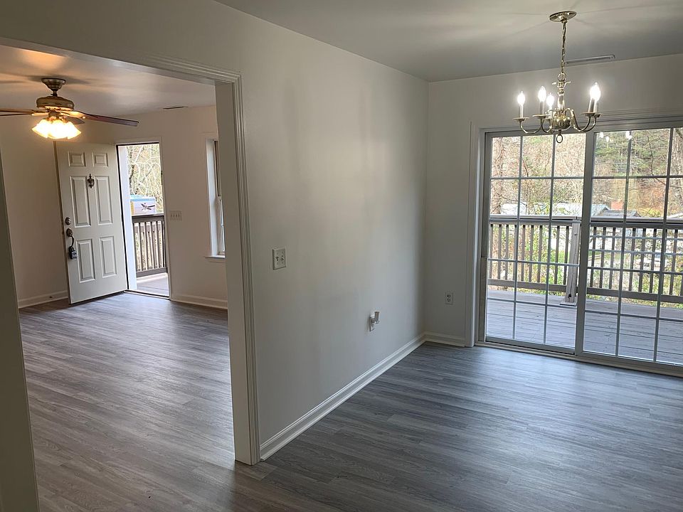 Welcome to your new apartment! This THREE bedroom TWO bathroom apartment won't last long. This is an upstairs unit in a duplex set on 4 acres. Large eat in kitchen, living room, dedicated laundry room, lots of windows, tons of closet space and a giant deck. Recently Renovated; freshly Painted with new hard flooring throughout. Central heat/AC, washer dryer hookups (tenant supplies their own washer and dryer). The apartment is furnished with a refrigerator, stove and dishwasher. Very small complex in a quiet setting. Professionally managed and maintained, enjoy a scenic and quiet apartment only 12 minutes from downtown Asheville. Pets allowed with additional deposit $200 per pet and monthly pet rent $25 per pet. 2 Dogs maximum. Families welcome, great school district. Trash and Water included in rent. Tenant responsible for electric and TV/Internet. NO SMOKING.