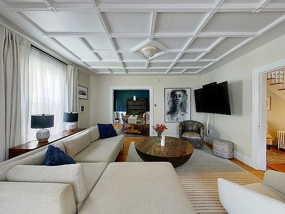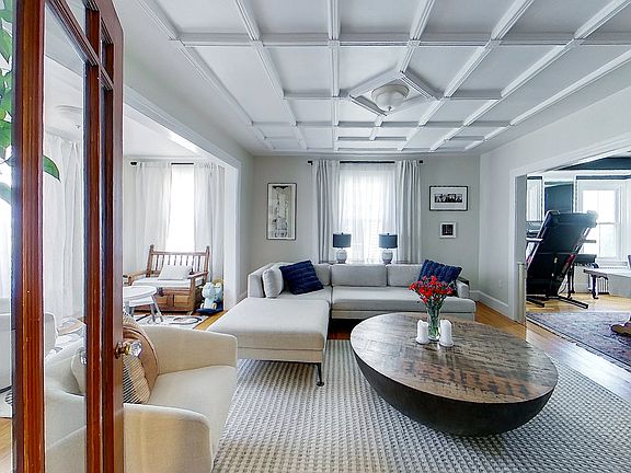 Available August 1, 2025 for Yearly Lease! Beautifully renovated single-family home nestled just off-Broadway offers a blend of classic charm and modern luxury. Step inside to a welcoming foyer with exquisite tile work, leading you through the French door into the entryway adorned with an ornate wood ceiling. Prepare to be wowed by the fully renovated chef's kitchen, boasting bright white backsplash, quartz countertops, custom cabinetry, and stainless steel appliances, including a gas stove. A large center island with a farmhouse sink completes this culinary dream. Hardwood floors flow seamlessly throughout the home, guiding you to the sunny living room, featuring large windows and coffered ceilings, open to a versatile space ideal for a kids' play area or a first-floor office. The coffered ceilings and expansive windows continue into the adjacent dining room, where bright white wainscoting and classic colonial blue create a warm and welcoming ambiance. Convenience abounds with a first-floor half bath and laundry room! A mudroom with ample storage, easily accessed from the kitchen, leads to a low-maintenance yard featuring a stone patio with a pergola and a small, grassy area. The sunny second-floor hallway guides you to four bedrooms and a remodeled full bath with a tub/shower. The master bedroom offers space for a king-sized bed and boasts a charming alcove perfect for a dressing room. Across the hall, a warmly wallpapered bedroom features an ornamental fireplace, while Bedroom #3, similar in size, is painted in a soothing beige. Bedroom #4, currently used as an office and enjoys abundant sunlight and complements the colonial blue paint. The third floor features a large 5th bedroom complete with an ornamental fireplace and kitchenette, ideal for hosting guests. A second renovated full bath on this level. Two additional, smaller bedrooms round out this incredible property. This home is more than just a house; it's a gem of modern living, infused with classic charm. Pets considered on a case by case basis. Street parking. Don't miss the opportunity to make it yours! Tenant pays all utilities