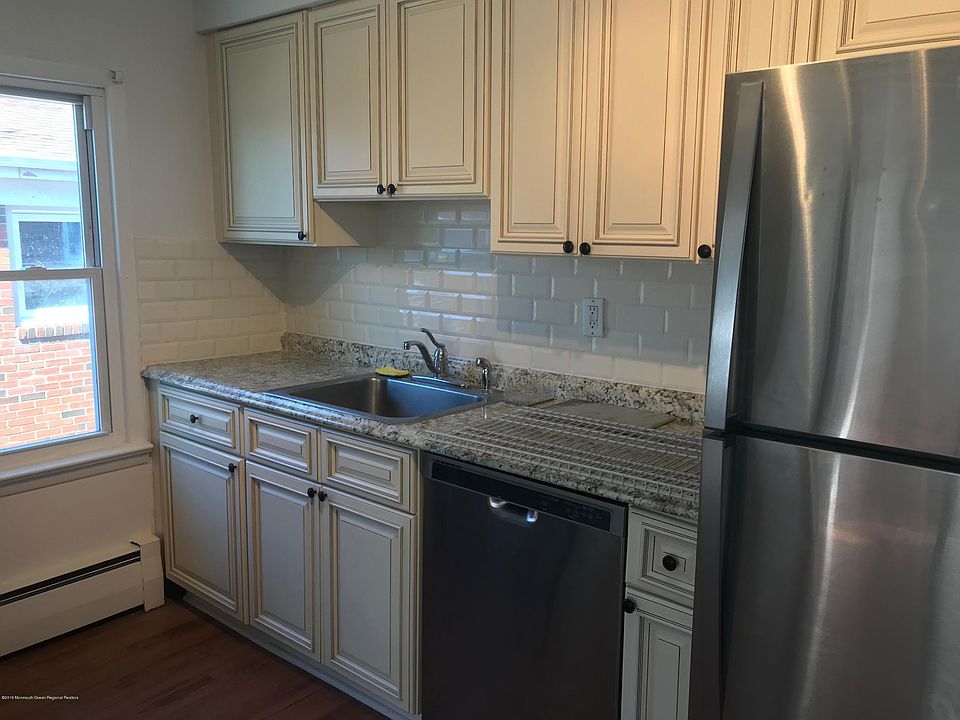Location, location, location. One block from beach and boardwalk in West-end, Long Branch. Few blocks away from Pier Village and conveniently located to major transportation to NYC. This unit has 2 bedrooms with a possible 3rd bedroom, and is totally renovated full bathroom, updated kitchen, SS appliances, microwave, dishwasher. Unit also includes access to a private 3 car driveway and spacious shared backyard. Unit has been freshly painted in neutral color and there is laminate-wood flooring throughout.This is an all-year round rental.