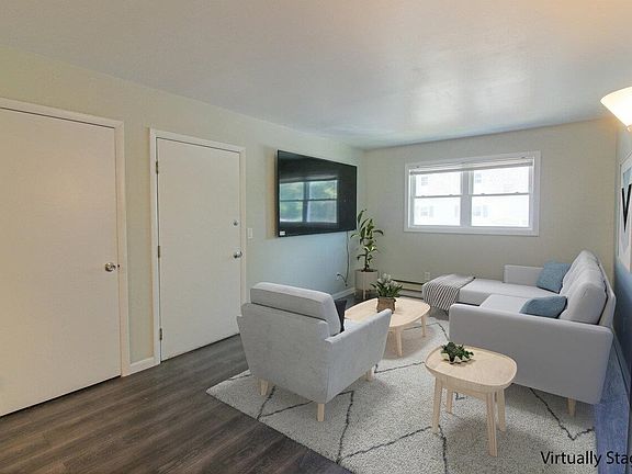 Attention investors or owner-occupiers! Move right into this second floor flat with 2 bedrooms, 1 bath, and recently remodeled with newer kitchen cabinets, counters, stainless appliances, flooring, and some windows! End-unit with extra windows and open floor plan. Plenty of closet space. Coin-op laundry on the first floor of the building. Two parking spots including a carport space with locked storage. Common acres with picnic table and plenty of space for play. Great location near shopping, restaurants, golf, and all Essex amenities. Cats allowed!