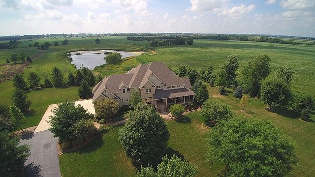 A GOLD MEDAL! This property will WOW you! Custom designed by the owners with attention to every detail. This majestic home is perfectly placed giving an unobstructed view of gorgeous open countryside. The owners mow 4 acres and lease out 34 acres for crops plus there's a 4 acre stocked pond. The master suite is on the 1st floor and offers a separate room that could be an exercise room or an office.The gourmet kitchen opens to an eating area & expansive great room also offering fabulous countryside views. There are 4 bedrooms on the 2nd level featuring 2 Jack & Jill bathrooms.The 10' finished walk-out basement is phenomenal & has a game area, rec room & bar w/ a complete 2nd kitchen. There is also a large guest bedroom & bathroom plus the floors have radiant heat. Outside the landscaping alone will amaze you & includes a gorgeous in-ground pool, pergola, huge granite bar & outdoor grill. For the collector there's a steel 46x75 out building with a full bath too much more to list here! A+