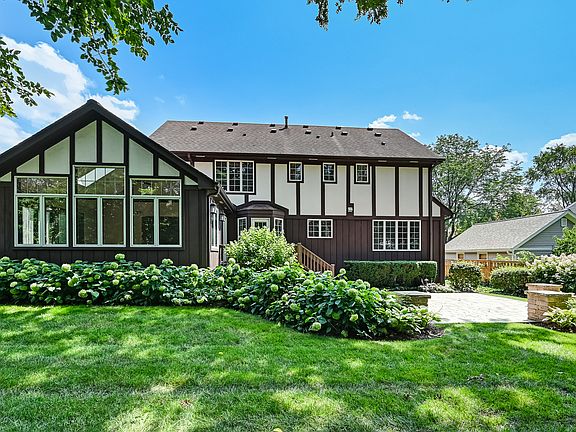 This Stunning Tudor combines classic architectural charm with modern updates offering practical living space and making this home a desirable property in Downers Grove! Open concept with the kitchen flowing into family room...sleek custom kitchen cabinets, high-end KitchenAid SS appliances, custom range hood, stone backsplash, granite counters, B-I pantry wall w/pull-outs, spacious eat-in breakfast area & more! The stunning Sun Room Addition is a true highlight with cathedral ceilings, skylights and walls of windows, providing a scenic view of the beautiful & private yard. Formal living room & dining room provide grand space for entertaining & creating memories! The upper level features 4 bedrooms, offering ample space for family or guests. Luxury primary suite w/WIC/custom/closet design, updated luxury bath w/double vanity, separate shower/bench, & jetted tub. The additional bedrooms share a well-appointed & updated hall bath. A finished lower level provides a second family room/rec room, play room & craft room & another full bath. First floor laundry room & convenient laundry chute. Zoned heating/cooling, ensuring comfort and energy efficiency. Professionally landscaped with a lush yard, paver brick patio and seating walls for outdoor enjoyment. Located in desirable school districts 66 & 99 enhancing the appeal for your buyer!