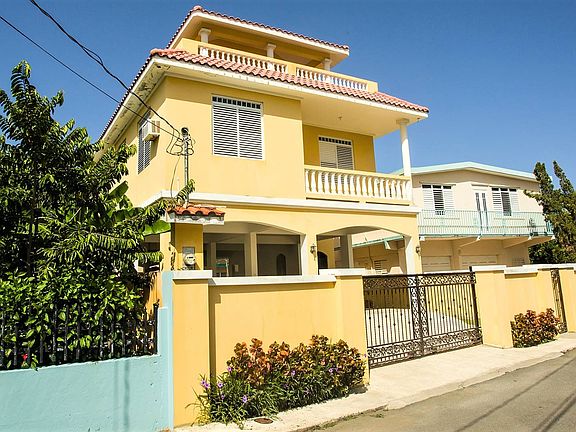 Walk to the Beach in Parcelas, Rincon! Rental income potential! 4BR/ 4BA gorgeous and well- kept home with balconies and ocean views. Fenced with beautiful iron gates and a large carport with storage and a full bath on the first level. Second level features 3 bedrooms and 2 baths, including a master suite, with brand new kitchen and large laundry area, sunken living room as well as a small office space, and ocean view balcony. Third level features a wraparound balcony with ocean views, master suite and small kitchenette/wet bar. Built in 2005 and has 2,037 sq/ft of living space. Located in a nice neighborhood, very close to beach access. Turn key, with appliances and some furniture included. If not used as primary residence, taxes would be approximately $1,149/yr. Hazard is $873/yr.