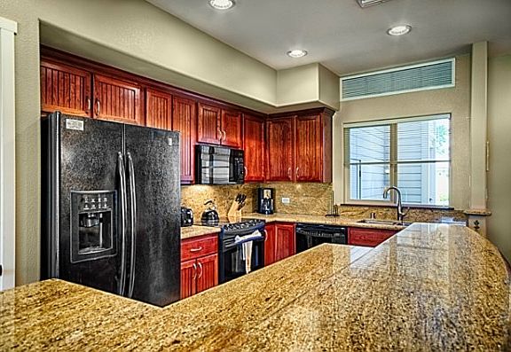 One of the most private garden units at the Palm Villas. Tastefully appointed, this unit offers several upgrades, including a summer kitchen. Look out onto the golf course from the lanai—it's like a world of your own. Come live your dreams today at the Palm Villas.