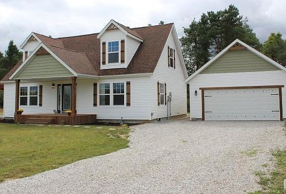 NATURE LOVER'S PARADISE!Nestled on 5 acres, sitting far back off the road, is this Cape Cod home that provides your ticket to tranquility. Newly renovated in 2023 this 3-4 bedroom 2 1/2 bath home offers over 2000 square feet of living space featuring an airy foyer with built in bench,coat rack and storage cubbies. The living room is bright and spacious with a corner gas fireplace. Enter the elegent kitchen with eating area which is versatile and inviting, making it the heart of your home. The main level master suite has a custom barn door leading to bathroom and walk in closet with built-ins. Perfectly placed main level laundry room keeps things nice and tidy. Upstairs houses a recreation room, 1/2 bath and 2 charming bedrooms featuring dormer windows for loads of natural light and picturesque views. Exterior features include a covered front porch, stamped concrete patio with pergola- makes a great spot for outdoor entertaining and a newly built 2 car detached garage. Come make great memories here!