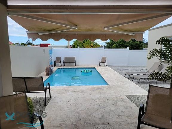 1-story concrete detached SFR. Remodeled! Has approximately 1100 sq. ft with 2 large bedrooms; 1 bathroom; living room; dining room; kitchen; single carport; A/C inverter units; security cameras; completely equipped and furnished. Also has a swimming pool with a mural and veil; a beautiful terrace with a kitchen and a full bathroom. Has solar panels installed. Corner lot of 800 sq. mts. approximately with lots of opportunity for additional development. Currently produces 75K in Airbnb. Excellent conditions, near beaches, tourist areas, and much more. Spectacular opportunity..