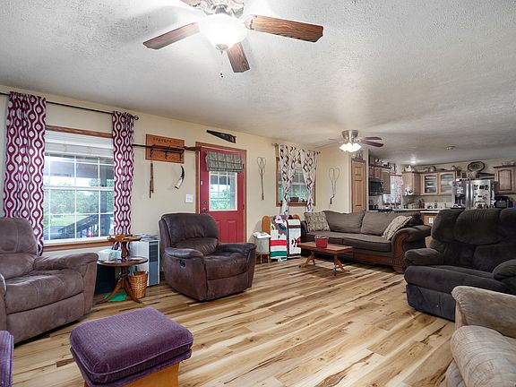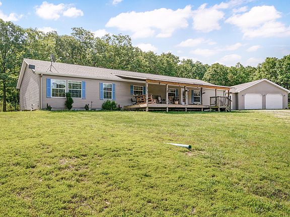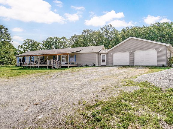 Welcome to country living with close hwy access. Only 50 minutes from Springfield! You may want to relax and enjoy the beautiful view or entertain friends and family on the large front porch. This well maintained very spacious 4 bedroom, plus office, 3 bath home on 14 acres m/l is waiting for you. Home has a large living area, oak kitchen, and large master suite with jetted tub and walk in closet. This property has had many new upgrades like flooring, HVAC, fireplace insert, insulation to name a few. The 30x40 shop has concrete floor. Another large building 30x150 with 75' of it enclosed with concrete floor and w/d hookup and half bath was previously use for a dog kennel and also has water ran to it. Out buildings have new electric supply. All appliances stay with property!