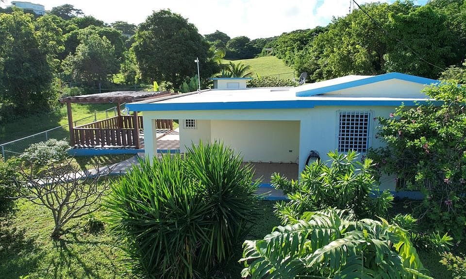 Casa Kasandra is a titled two bedroom and two bathroom home nestled on a landscaped nearly two acre lot in the center of Vieques island in Barrio Lujan. The home is ideally located a few hundred yards from the entrance to the Fish and Wildlife Preserve with thousands of acres of recreational land and many of Vieques’ famous beaches. It is a 5 minute drive to Isabel, 10 minutes to Esperanza, 1 minute to the preserve. Casa Kasandra has been immaculately cared for with upgrades being recently made. The house comes very comfortably furnished with some of the artwork remaining with the home, as well as a fully equipped kitchen with all appliances, laundry room with washer and dryer, an outdoor grill area, as well as some beach gear. The house is completely air conditioned if that is desired or open all windows to catch the Trade Winds. There are multiple outdoor entertaining areas including two covered terraces on the front of the house and a pergola allowing dappled light to the South side of the house, plus a picnic area in the fruit gardens. Up the hill and behind the house is a concrete bohio that is an excellent retreat for enjoying the views of the Caribbean ocean including the Southern bays and wildlife areas. The home has a backup water system with a pump and pressure tank as well as a built in propane generator that can power the entire home. All the doors and windows are storm secure. There is a storage room that houses sports equipment, paint and gardening implements and the yard is fully fenced. Casa Kasandra has just under two acres of land that offers plenty of room to create your own farm with room to grow fruit trees, vegetables or as you desire. It already includes mango, bananas, starfruit, pineapple, and recently planted papaya and avocado.