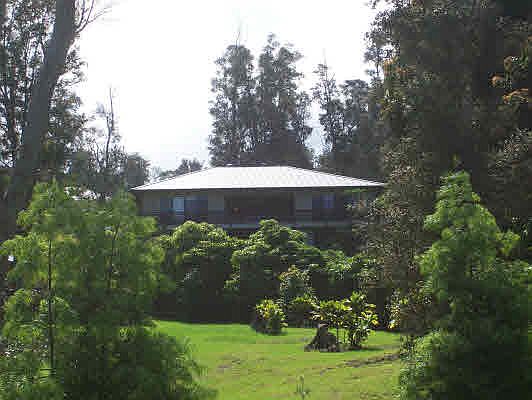 Perfet for artist and nature lovers! Architectural sophistication combines the Ohia forest setting with resort style living on a country acre close to town. Natural light abounds with open beams and natural wood ceilings. An indoor atrium features a large hot tub with indoor waterfalls. Quality construction and excellent condition. Neighbor will trim trees for additional view. *Beautiful coastline and sunset views. *Porte Cachere entry with giant Mango front door. *Granite counters, Jacuzzi bath, walk in closet. *Towering Ohia columns run to cathedral ceiling. *Spacious covered outdoor dining area. * Over 4,000 feet of living area upstairs, (includes atrium). Downstairs can easily be finished for additional space. Stubbed for electric and plumbing. Septic approved for five bedrooms.