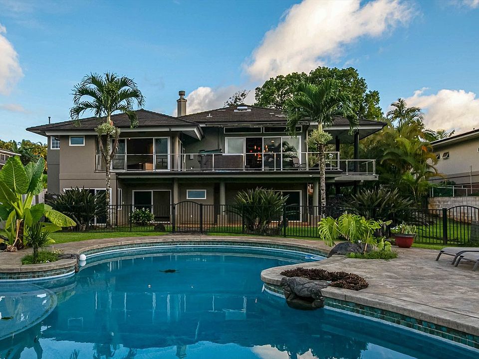 Let the majestic views of the beautiful Makaleha Mountains and abundance of waterfalls greet you each day as you awaken to this paradise you can call “home”. Yes,,,,it is Contingent but we are seeking back up offers, so this might be a chance for you to still have an opportunity to own this amazing property. Located in one of Kauai's most beautiful view locations you will feel a million miles away from the hustle and bustle of the world, yet, in reality, only a short drive to beaches, shopping and dining from this perfect location. As you enter the private circle drive and pass the beautiful 3 car garage you will arrive at one of the most beautiful doorways to paradise you could ever want. The house was built with every imaginable feature available. Luxury designs and finishes and the finest of everything. From the Gorgeous Brazilian Cherry floors, the Custom Cabinetry, Marble, Granite, Stone and Glass finishes to the Custom lighting, Central Air Conditioning and creature comforts that will pamper you in every way. The outdoor space rival some of the finest resorts in Hawaii, with Honed Granite tile and Chrome Cable Rail. From the Hot Tub you are treated to the amazing views of the yard and Mt Makaleha that will bless you with waterfalls daily. This deck also provides an expansive outdoor dining space complete with gas grill and electrical shade and wind screens. From this lanai area you will have full views of the large tropical back yard with an enormous resort style pool complete with Baja shelf, waterfall, and under waterfall grotto. Enjoy the views from the pool as well, of one of the most remarkable places on the planet, in the magical place call Makaleha This multi-level home is an entertainer’s dream, or an extended family's retreat with multiple private spaces for plenty of family and friends. If you are a discerning buyer this is a house, you won't want to miss. * This home has been virtually staged