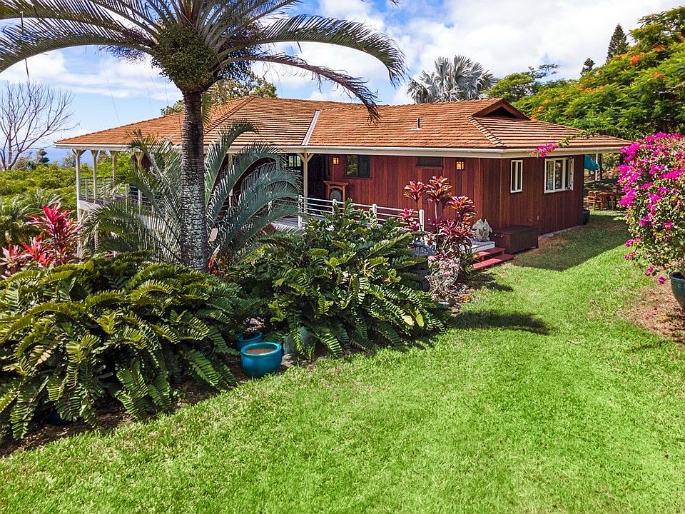 Step into this restful & peaceful property with a rolling green lawn, big, beautiful monkeypod, Jacaranda, Hardwood & fruit trees, ocean views on just under 5 acres of land. Peaceful & private setting.... whitewater ocean, shoreline views & Emerald green Waiohinu mountains are the backdrop.