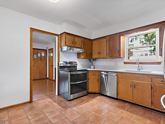 They don't build them like this anymore! This solid brick expanded ranch, custom-built in 1950, is nestled in Clifton's desirable Maple Valley section. Situated on a 6,030 sq. ft. lot, this timeless home blends classic craftsmanship with modern updates, offering both character and comfort. Step inside to find gleaming hardwood floors, a welcoming wood-burning fireplace, and a bright, open layout. The main level boasts a spacious living room with a wall of Andersen windows, an eat-in kitchen featuring quartz countertops, an oversized modern sink, and stainless steel appliances including stove, dishwasher, and refrigerator. Off the kitchen, enjoy a sun-filled bonus room perfect for year-round relaxation. Three bedrooms and a beautifully renovated bathroom complete the first floor. The finished basement adds versatile living space, while central air conditioning keeps the home comfortable year-round. Additional highlights include a one-car garage, driveway for two cars side-by-side, and a backyard oasis ideal for outdoor gatherings and activities. Perfectly located just minutes from Garret Mountain Reservation, a National Natural Landmark with over 568 acres of trails, recreation, and equestrian activities. For commuters, NYC transportation is only half a block away. Built to last and designed for everyday living, this captivating home checks all the boxes for those seeking a turn-key quality property. Don't miss the chance to call this impressive home yours!