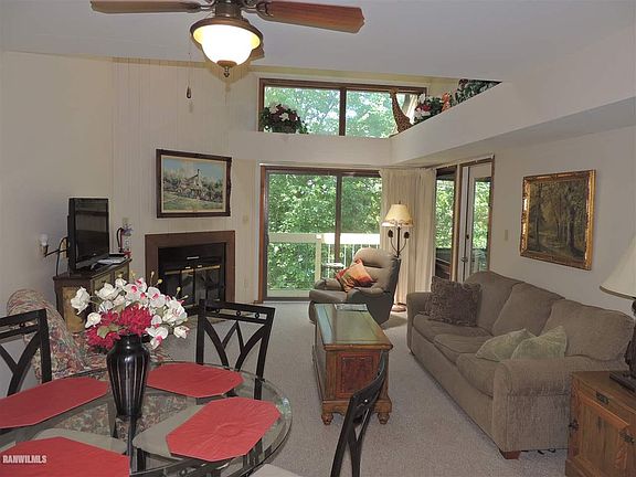 Clean and comfortable upper level Long Bay Point Lakehome offering stunning elevated seasonal views of Lake Galena! Enter on the main floor and find a functional galley kitchen with lots of cabinetry, pass through, and eat-at bar, open dining area, guest bedroom with adjoining full bath, laundry/utility room, and spacious living room with vaulted ceiling, skylight, wood-burning fireplace, and access to screened porch and rear deck, both great options to enjoy the outdoors and views of Lake Galena. Upper floor has large loft ideal for family room, office, etc., as well as master bedroom with its own private full bath. Sold furnished with some exclusions to be negotiated via separate bill of sale. Currently licensed for vacation rental, and in Eagle Ridge Resort & Spa Rental Program.