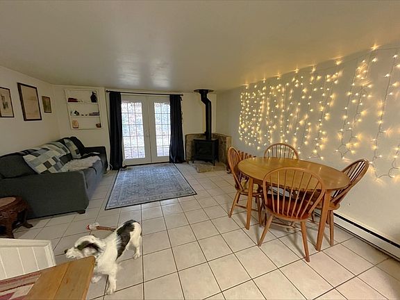 Perfectly located in Intervale; walking into this condo you are welcomed with warm softwood floors that light up the room. From the primary bedroom you can walk out the slider to the large deck and enjoy the filtered Mt views. You will love the updated full bath with tiled walls, glass doors, modern lighting, and plank type flooring. The next level has an updated kitchen with granite counter tops, tiled flooring, and is open to the dining/living area where there is a modern gas “wood” stove on a stone hearth. Walk out the lower level french doors to a private patio area where the seller has done some plantings, and there is storage shed for your toys.
