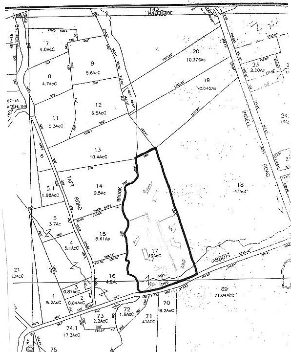 Wooded lot with stone walls delineating property lines. Enough frontage for 3 lots. Abbott Brook acts as western property line. Sloping lot with southwestern exposure. AutoCAD files for property available. For sale by owner.