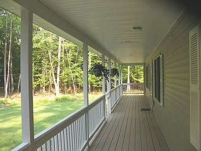Beautiful & secluded "Farmhouse style" Contemporary Ranch on 1.73 maintained acres features real mother/daughter set up w/2 kitchens & separate entrances. Beautiful open floor plan w/hardwood floors, vaulted ceilings, wood burning fireplace, enclosed porch, OHA heat and central air. Home has total of 4 BRs & 3 BAs, plus a 1 car garage! Priced to sell & ready to go! Sq. ft. is approx.