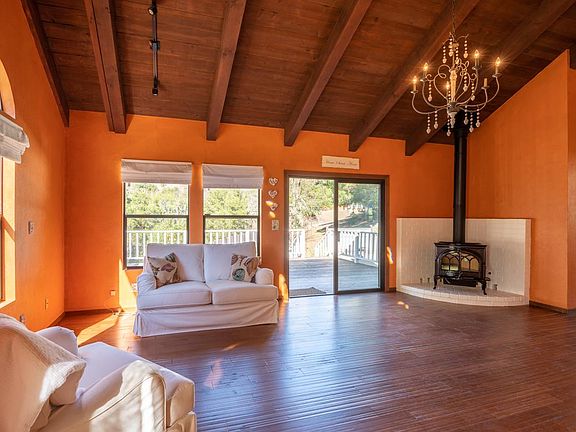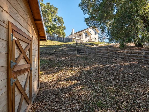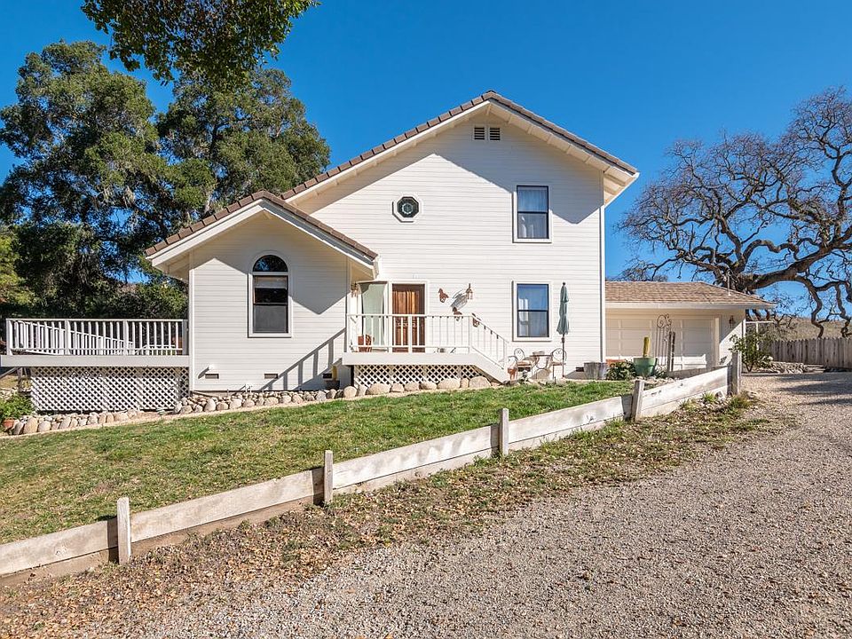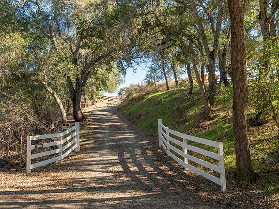 Picturesque ranch property ready for horses with white-washed fences, barns, and 2-story farmhouse on 5 mostly usable acres in Upper Carmel Valley. Abounding in natures beauty, down a peaceful country road to a sundrenched opening, this 3 BD, 2 full BA home welcomes with new wood flooring, vaulted open-beam ceilings, wood-burning stove, and cascading chandeliers in a spacious open living-dining area. Kitchen boasts gourmet 6-burner gas range, breakfast bar, walk-in pantry. Downstairs bedroom and full bathroom with marble floor and shower. Large laundry room. Master bedroom suite with lovely pasture views, large bath with relaxing tub. Several newly constructed barns and outbuildings are perfect for horses, goats, chickens, and any animal your country heart desires. Gently rolling grounds manicured to perfection and studded with gorgeous oaks. Oversized attached 2-car garage, private well and water holding tanks, concrete tile roof, CUSD, 9 miles to renown Carmel Valley Village.