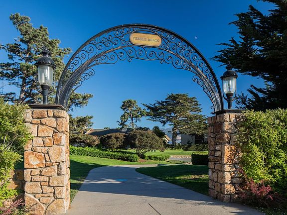 RARELY ON THE MARKET MOVE-IN READY IN DOWNTOWN PEBBLE BEACH. Arguably the most ideally located residence in Pebble Beach Resort across the street from the iconic arches leading to the 1st tee of the Pebble Beach Golf Course. This oceanview luxury home is your own private escape just steps to all the world-class amenities at The Lodge and Beach and Tennis Club, fine restaurants, the PB Market, shops, post office, and the famous Palmero Spa. The home has a spa-like feel throughout with unique amenities such as room service from the resort, spectacular ocean views from 3 terraces, sliding glass doors that flood the open concept living areas with an abundance of light, a great room with vaulted ceilings, an open kitchen, and 3 impressive suites with views of Point Lobos, Carmel Beach, and both world-famous golf courses (including the new Tiger Woods/PB Co. Collab). Newly installed full house automatic generator and approved plans in place for major additions including another 2-car garage.