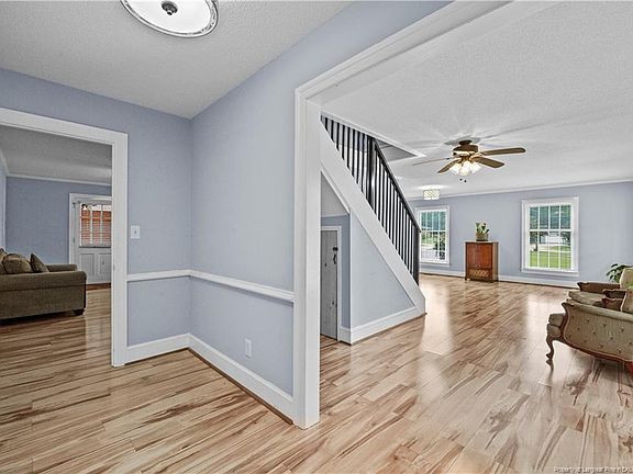 Enjoy this Rocking Chair Front Porch with pond views and quiet corner lot on over an acre of land.Brick ranch home with 3 bedrooms including primary and 2 Full Baths. Kitchen has granite countertops, tiled backsplash and stainless steel appliances. Den with brick fireplace and mantel. Large living room. Beautiful engineered hardwood throughout the home with a fresh coat of paint. Primary bedroom has walk-in Cedar lined closet. Screened in back porch for backyard enjoyment. Large Two Car Carport attached to home with extra storage. Two storage sheds in the partially fenced in back yard.