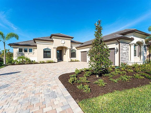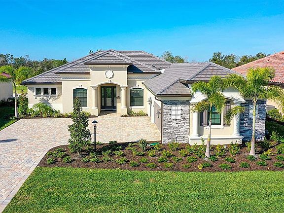Welcome Home to Lakewood National Golf Club, an Arnold Palmer designed championship golf course, bundled within the award-winning masterpiece community of Lakewood Ranch. This very thoughtful and inviting floorplan, the Napoli, located within the estate section, was completed in 2021 and has rarely been occupied. A great room concept with separate dining area and eat in kitchen provides gas cooktop, pantry, abundant cabinetry and counter space for the chef in the household. The master bedroom suite, separate from the two additional guest bedrooms is a natural escape to relax after playing 36 holes of golf, tennis, pickleball, a workout at the state-of-the-art fitness center or just enjoying a relaxing day at the resort style swimming pool. If the family enjoys dining outdoors, a wonderful outdoor kitchen complete with gas grill, vented hood and outdoor refrigerator within a covered, screen lanai with pavers. A great feature: Side entry 3 car garage outfitted with custom cabinetry and epoxy finished floor. Lakewood National has become synonymous with luxury, a destination for those looking for a resort lifestyle. The club has full-time, onsite golf, fitness and racquet sports professionals to assist our members with their sport and fitness goals. Lakewood National is simply one of the best golf course communities in all of Florida.