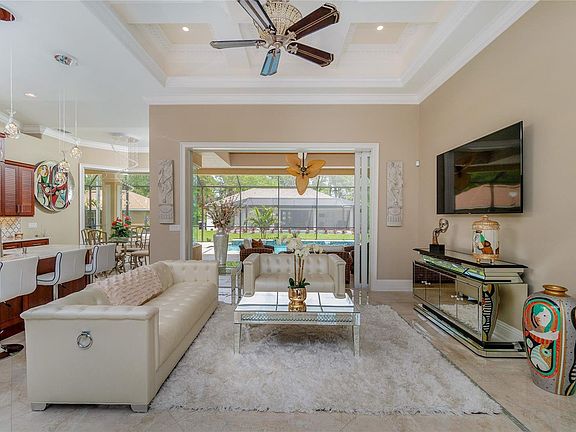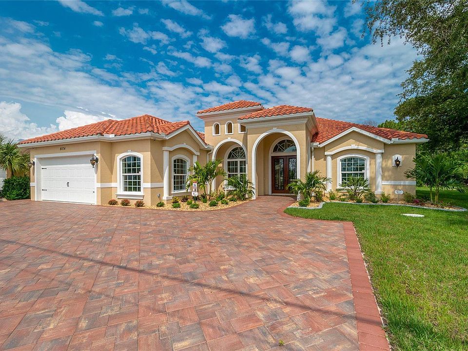 Welcome to 8074 Wiltshire Dr! This stunning custom builder's luxury model home has never been lived in and is ready for immediate occupancy. The Great room features soaring 12-14' ceilings with custom moldings, in-laid flooring designs & high-end finishes everywhere. Enormous outdoor entertainment area with custom, built-in summer kitchen and automatic storm fabric roll down shutters which enclose the entire lanai when desired. A pool bath gives immediate access from the lanai. The kitchen features custom cherry Antigua cabinets, state-of-the-art appliances, Cristallino quartzite countertops with under-counter lighting on the island, and marble backsplash with in-laid mosaic design. Wrapping around the breakfast nook is a huge 9' high aquarium glass window which lets in tons of light and gives a perfect view to the pool area. The Master suite shows beautifully with Brazillian Pecan flooring, backlit moldings, his/hers closets, separate vanities with custom glass sinks, arched mirrors and an incredible Roman shower with seat & multiple shower heads. Insulated & air-conditioned garage with epoxy finish, impact windows, wrought iron front door, integrated storage shed, travertine pool pavers, specialty light fixtures & plumbing fixtures. Honestly, too many features to list, come see for yourself! Fully furnished, if desired. Make your appointment today to come see this impressive and attention to detail home.