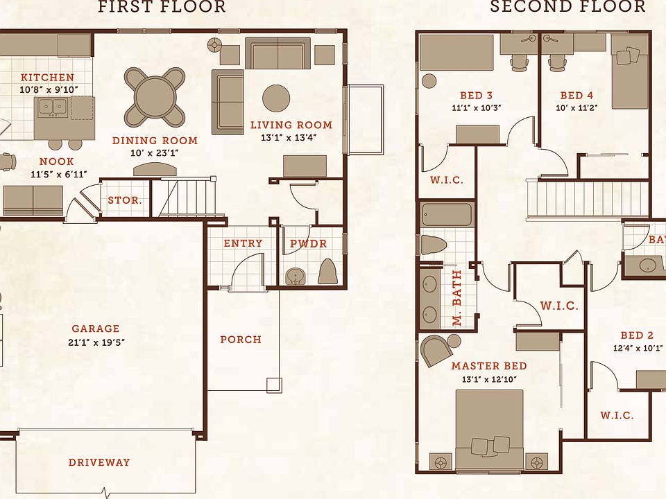 There are 2 architectural exterior styles - Plantation and Cottage, kitchen island, granite countertops in kitchen, double lavatories in master bath, quartzite countertops in bathrooms, porcelain panel with wainscot accent band in bath, 9' ceilings on first floor, 8' ceilings on second floor, ceiling fan junction boxes in all bedrooms and living room, side door in garage, 80 gallon solar water heater, fenced yards, an optional split a/c system, 2 large closets in master bedroom including walk-in closet and walk-in closet in three bedrooms.