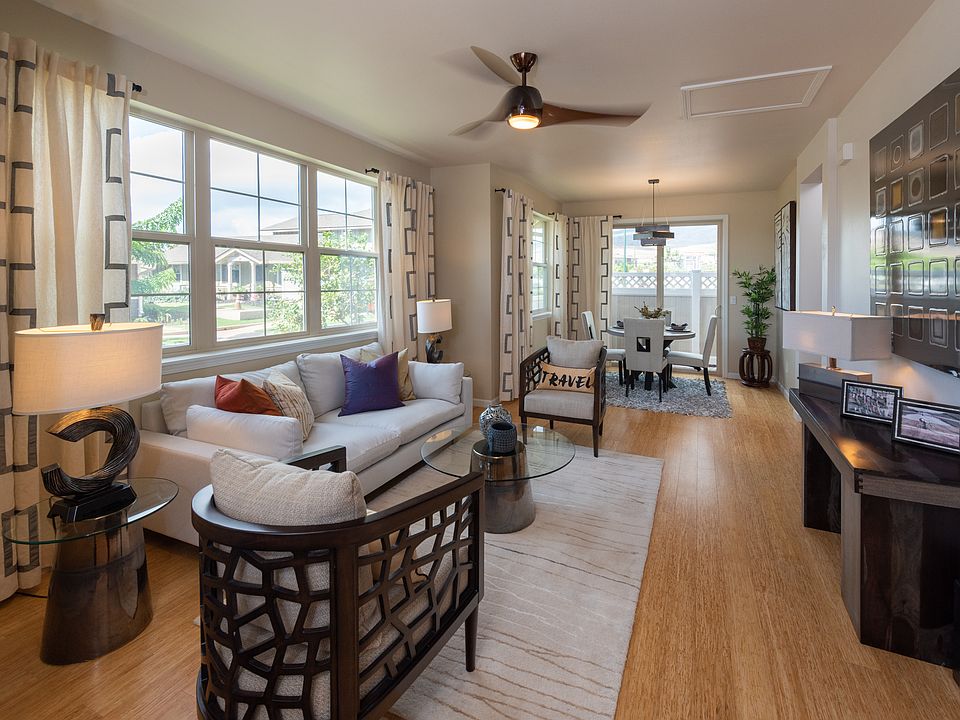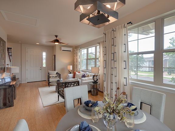 There are 2 architectural exterior styles - Craftsman and Cottage, sliding glass door in dining room, granite countertops in kitchen, walk-in closet in master bedroom, double lavatories in master bath, linen cabinet on upstairs landing with countertop, quartzite countertops in bathrooms, porcelain panel with wainscot accent band in bath, cast iron tub/shower, 9' ceilings on first floor, 8' ceilings on second floor, ceiling fan junction boxes in all bedrooms and living room, side door in garage, 80 gallon solar water heater, fenced yards and an optional split a/c system