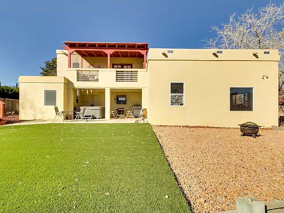 Discover New Mexico bliss in this 3-bedroom, 2-bath Albuquerque extended stay/vacation haven. Savor your mornings with coffee and panoramic views from the balcony's outdoor dining area, then discovering local treasures like the Indian Pueblo Cultural Center or Petroglyph National Monument's majestic landscapes. As the sun sets, retreat to the hot tub and bask in the serenity. This gem offers an ideal blend of relaxation and exploration, tailored to suit every inclination. The property boasts a furnished balcony, hot tub, and free amenities.