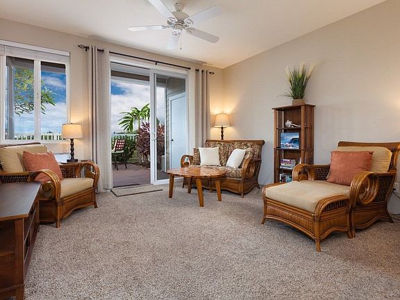 Awesome 3 bed/2 bath ground floor condominium with nice outdoor living space. Nice ocean views from the lanai. This large concrete lanai offers a great space to enjoy outdoor living and meals with friends. Sold furnished and ready to go! Two parking spaces make this easy access unit a great full time or part time residence. Kona Sea Ridge is a popular gated community close to down town Kailua-Kona along Alii Drive.
