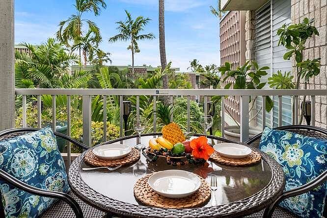 Top floor, partial ocean view, turnkey furnished 1-Br condo. The floorplan of this condo has been opened up providing a larger living space, brighter feel and improved airflow. Vinyl plank flooring has been installed throughout. The condo is decorated with attractive, cozy furnishings with a tropical feel. The third-floor location takes full advantage of the trade winds, garden landscaping, and partial ocean view. Begin the day on the private lanai with your favorite Kona coffee or wind down in the evening with a tropical cocktail. Solar powered Tiki lights light up at sunset creating a very Hawaiian atmosphere. Alii Villas is a highly sought after oceanfront condominium complex located on the makai side of Historic Alii Drive. Surround yourself with the beauty of the impeccably manicured, lush tropical landscape, with its large variety of plants and flowers. Take a swim in the solar heated saltwater pool, borrow a book from the poolside library, or relax in one of the lounges on the pool deck. The large BBQ deck is a wonderful place to gather for lunch or dinner with a spectacular ocean view! There are benches near the ocean where you can watch spinner dolphins, breaching whales (in season) and spectacular year-round sunsets! Take a short walk to Kailua town where you can enjoy fine dining, shopping, outdoor markets, outdoor volleyball, sightseeing, surfing, and boogie boarding! Live the Hawaii dream year round or transfer the STVR permit and rent out, the choice is yours! Alii Villas is a pet friendly complex. One small dog or cat is permitted with board approval. Don't forget to click on the arrow at top right to see a virtual tour!